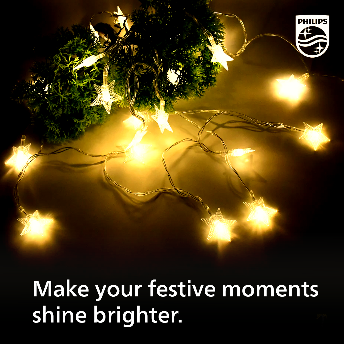 The Twinkling Stars String Light blends aesthetic elegance with trusted Philips quality. Its starry glow creates a warm and joyful atmosphere, making it the ideal choice for festive decorations, home décor, and special occasions.