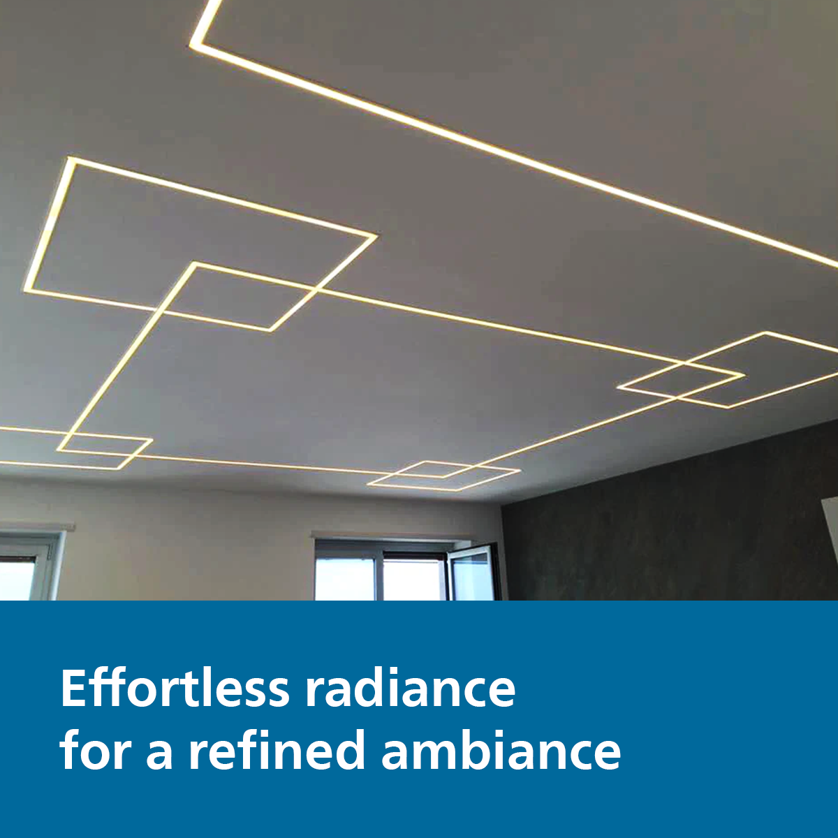 The Philips LED Strip Profile Shine brings together high-performance lighting and minimalistic design in one ready-to-use solution. With 240 LEDs per meter, this strip light offers superior brightness and uniform illumination — perfect for both ambient and task lighting across homes, offices, and commercial interiors.