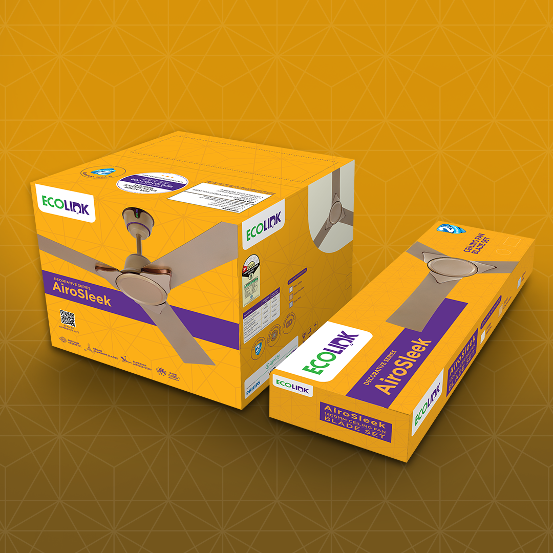 Presenting AiroSleek by EcoLink – where sophistication meets functionality. This fan's sleek design and powerful air circulation elevates any room's ambiance while delivering efficient performance. Engineered with copper winding and double ball bearings, it promises long-lasting durability. Enjoy energy-efficient cooling with its low power consumption, supported by a 2-year warranty.