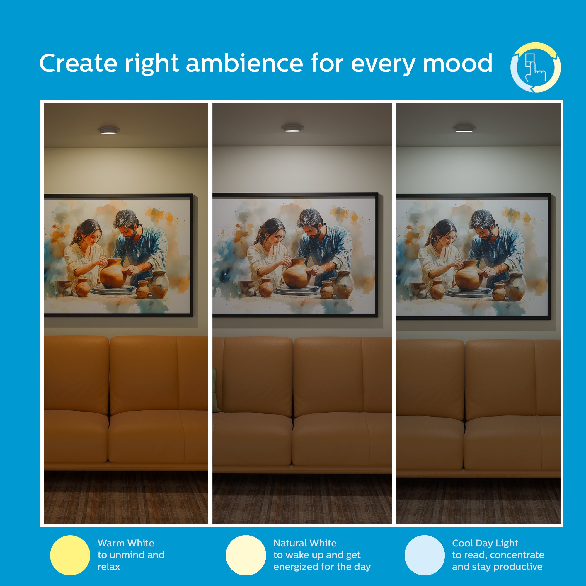 - Scene Switch feature: The Scene Switch feature allows you to toggle between Warm White, Natural White, and Cool Day Light with a simple flip of the wall switch, giving you complete control over the mood and ambiance of your space. This feature is perfect for creating the perfect atmosphere for any occasion.