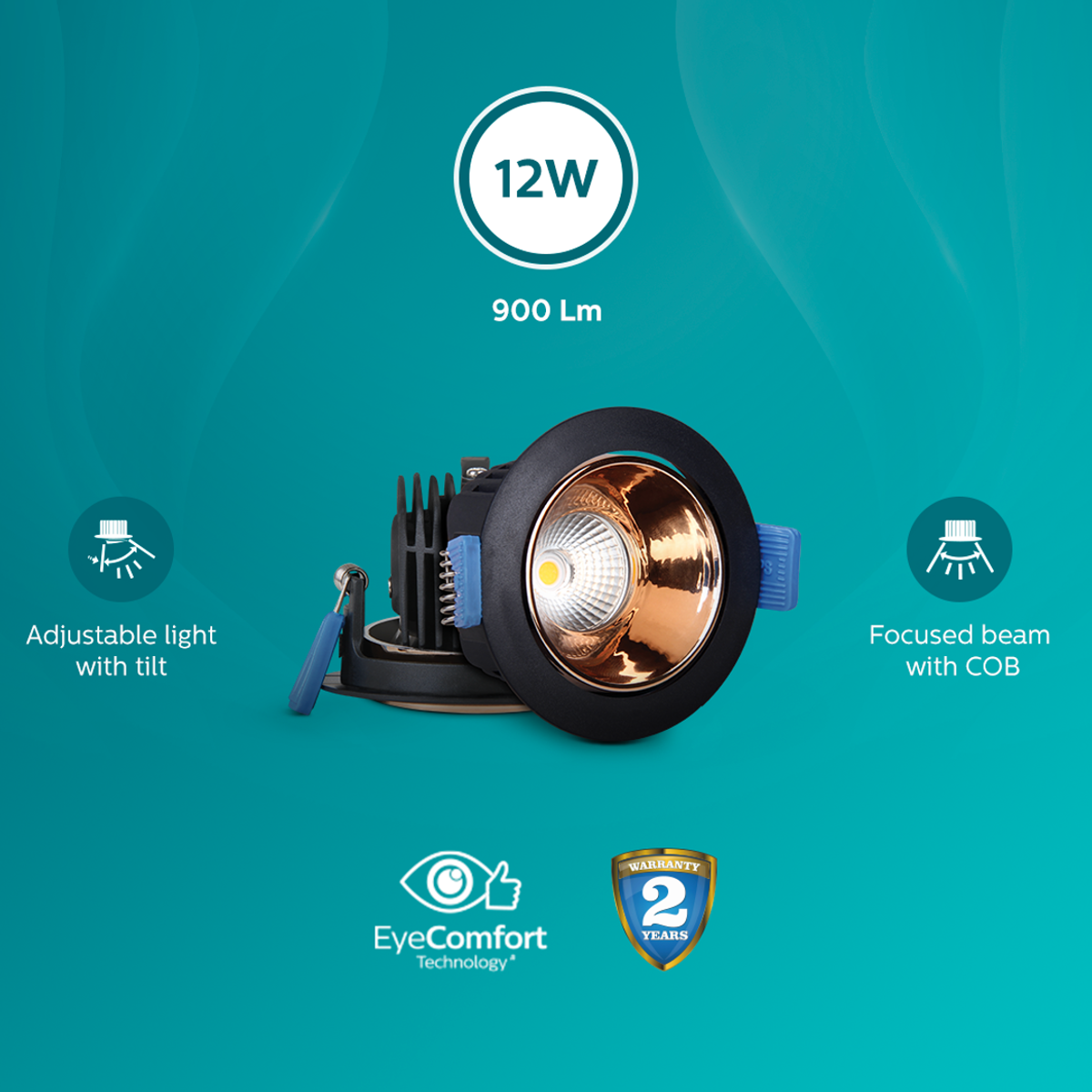 Elevate your space with Philips GlideSpot LED COB Light, where superior lighting meets exquisite style. This premium recessed spot light not only delivers exceptional illumination but also features decorative finishes that effortlessly complement your room's decor. It's the perfect fusion of form and function.