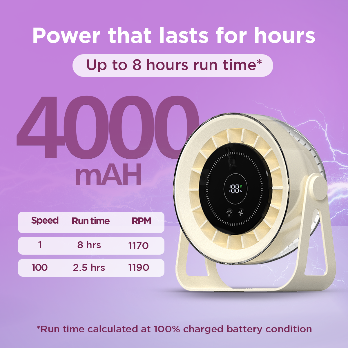 | Speed Setting | Run Time (Fan Only) | Run Time (Fan + Arctic Chill) | RPM |
